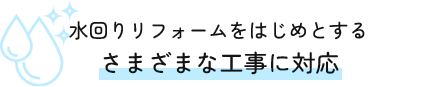 トイレやキッチンなどのリフォームをはじめ、水回り設備に伴う配管工事や給湯設備の工事にも携わっております。